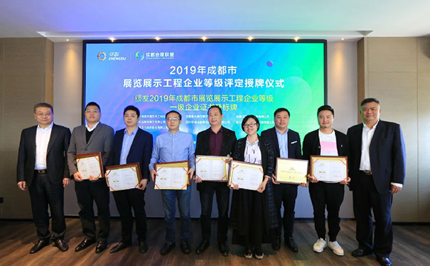 10月28日,2019年成都市展览展示工程企业等级评定颁证仪式在成都天府新区举行,经过3个月的评定,最终成都鼎尖展览展示有限公司、荣获成都市展览展示工程企业一级资质称号。
